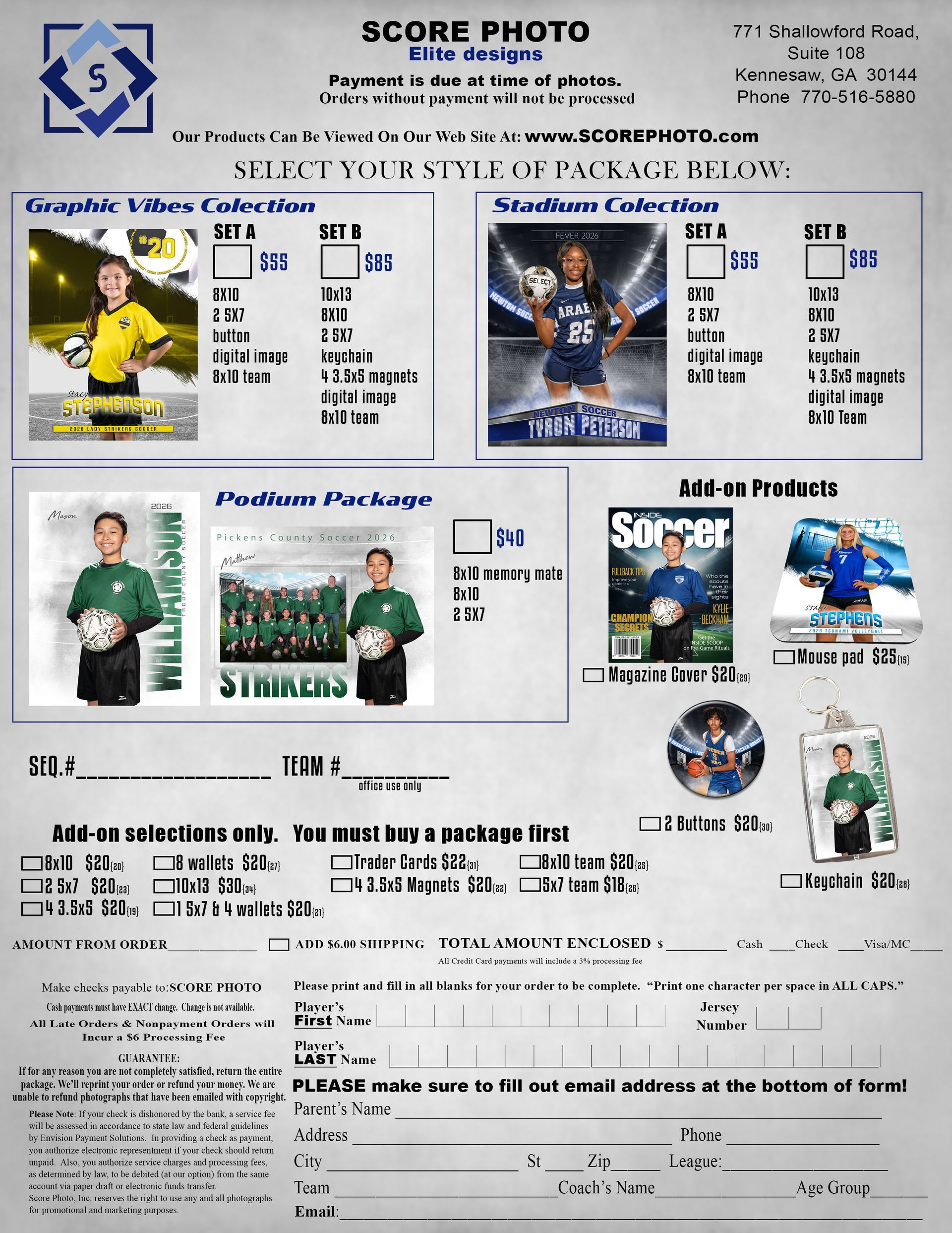 Please bring the completed order form with you the day of your team's scheduled Team Photos